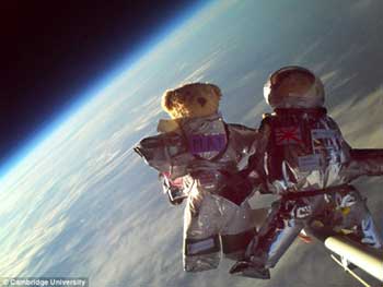 據(jù)悉,在此次“太空行走”之前,學生們已經(jīng)進行過10次嘗試,其中一半的泰迪熊都在收回過程中掉到海中,另有一只泰迪熊在斯堪的納維亞半島失蹤。