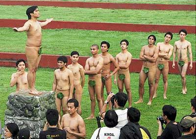 中新網(wǎng)12月15日電 據(jù)新加坡《聯(lián)合早報(bào)》報(bào)道,菲律賓大學(xué)日前為慶祝創(chuàng)校一百周年,在校區(qū)內(nèi)舉行年度裸體活動(dòng)。共一百名男性學(xué)生、老師和校友,僅穿著縫有綠葉的肉色內(nèi)褲,輪流站在石臺(tái)上,張開雙手模仿校內(nèi)知名裸體雕像,象征對(duì)真理和知識(shí)無(wú)止境的追求。