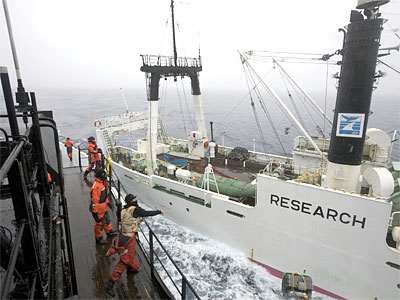 日捕鯨船遭保護組織投“臭彈”