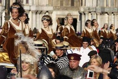 中新網(wǎng)2月16日電 據(jù)英國(guó)媒體報(bào)道,參加威尼斯狂歡節(jié)的游行隊(duì)伍15日行進(jìn)在圣馬可廣場(chǎng)上。