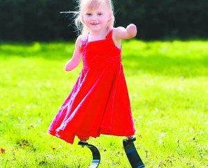 2005年,僅1歲多的小埃莉突患腦膜炎送進(jìn)醫(yī)院,心跳一度暫停跳動,醫(yī)生甚至向她的父母宣布死亡。就在她的父母以為即將失去愛女時,小埃莉奇跡般地恢復(fù)心跳。然而發(fā)生奇跡的4天后,小埃莉的四肢逐漸壞死,醫(yī)生不得不切除她的四肢。埃莉的母親、現(xiàn)年35歲的麗莎回憶道:“當(dāng)我見到她手術(shù)后的模樣時,我開始悲痛地尖叫起來。因?yàn)樗皇O铝四敲匆稽c(diǎn)點(diǎn)。”讓人驚訝的是,埃莉的孿生姐姐蘇菲竟主動開始幫母親承擔(dān)起照顧妹妹的責(zé)任,給妹妹喂食,陪她玩耍,當(dāng)起了“第二媽媽”。受蘇菲的鼓勵,小埃莉決定堅強(qiáng)面對身體的殘疾。小埃莉穿著假肢的照片轟動英國。