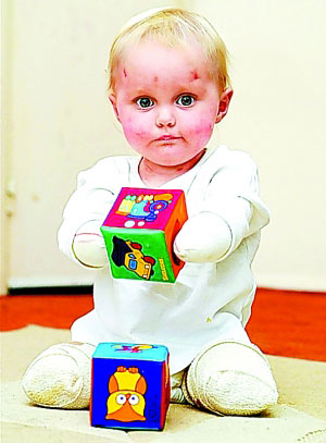 1歲的堅強(qiáng) 患腦膜炎失去四肢