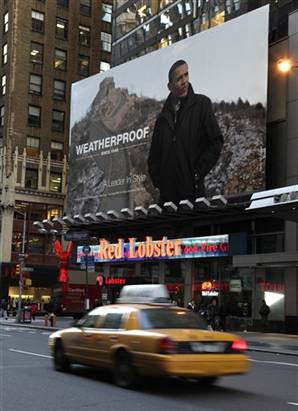 中新網(wǎng)1月7日電 6日,一幅奧巴馬的巨幅照片出現(xiàn)在美國紐約時(shí)代廣場,這一次奧巴馬的形象不再完全代表國家總統(tǒng),他成了一個(gè)外衣品牌的代言人。