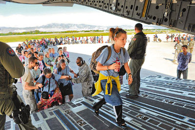中新網(wǎng)1月18日電 據(jù)香港《文匯報(bào)》18日?qǐng)?bào)道,海地7級(jí)大地震后,美國(guó)空軍接管首都太子港機(jī)場(chǎng),但機(jī)場(chǎng)運(yùn)作仍亂作一團(tuán),而且?guī)缀踝兂擅绹?guó)人專用機(jī)場(chǎng),一切以撤離美國(guó)公民為優(yōu)先,連其它國(guó)家的救援飛機(jī)也不允許降落。據(jù)報(bào)一架載運(yùn)野地醫(yī)院設(shè)備的法國(guó)飛機(jī)要求降落,但不獲許可,法國(guó)外長(zhǎng)已正式向美國(guó)駐法國(guó)大使館提出抗議。