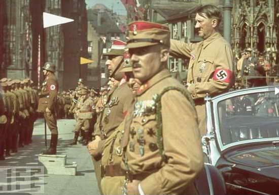 美國(guó)《生活》雜志6月4日刊登了德國(guó)攝影師雨果-杰格拍攝的一組從未被公開(kāi)的德國(guó)納粹頭目希特勒的彩照。雨果-杰格1936年至1945年期間被允許跟隨希特勒一同活動(dòng)。作為希特勒的私人攝影師之一,他用彩色照片記錄了希特勒和其親信們的小型聚會(huì)、公開(kāi)活動(dòng),甚至是私人時(shí)刻。在三十年代晚期,只有很少的攝影師使用彩色照片,杰格是最早使用彩色照片的攝影師之一,希特勒對(duì)他所看到的照片感到滿意。希特勒曾對(duì)杰格稱(chēng):“未來(lái)屬于彩色攝影!