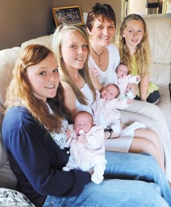 中新網(wǎng)5月14日電 據(jù)英國媒體13日報(bào)道,英國媽媽戴爾在生了一對雙胞胎女兒,以及另外一女后,最近又誕下三胞胎女兒。而更少有的是,戴爾誕下的三胞胎來自兩個(gè)卵子。這一家猶如中大獎(jiǎng),因?yàn)檫@樣的生育幾率,百萬家庭中才有一個(gè)。