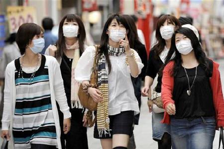 部分日本人已經(jīng)習(xí)慣戴口罩以防花粉過敏或怕將感冒傳染給其他人,口罩在大阪及兵庫縣西部地區(qū)已成為基本飾品。目前這些地區(qū)感染新流感的人數(shù)已經(jīng)超過150人。
