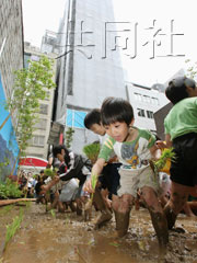 中新網(wǎng)5月30日電 高級(jí)品牌店羅列的東京銀座一丁目日前出現(xiàn)了水田!霸阢y座種大米2009”活動(dòng)30日正式拉開(kāi)帷幕。