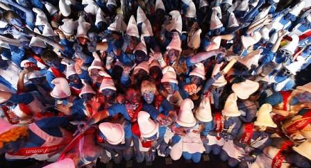據(jù)悉,前紀(jì)錄是由1253名藍(lán)精靈于去年在愛爾蘭城鎮(zhèn)卡爾斯布拉尼創(chuàng)造的。