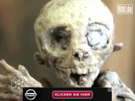 明星主持人、同時(shí)也是一位飛碟專(zhuān)家的茂森在其節(jié)目中指著已經(jīng)被制成標(biāo)本的外星人寶寶的照片,興奮地說(shuō):“我敢肯定這些照片都是真的!”