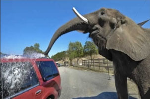 中新網(wǎng)9月25日電 許多民眾在洗車時(shí)乏味又耗時(shí)間,但在美國(guó)一家野生動(dòng)物園卻讓洗車變得超級(jí)有趣,因?yàn)樗麄兣纱笙髞?lái)幫忙洗車,民眾不但可以讓愛車變干凈,還可近距離觀察大象。