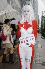 中新網(wǎng)3月25日電 據(jù)日本共同社報道,美國動物保護組織“PETA”的一名加拿大籍女性成員24日在東京赤坂的加拿大駐日本大使館前,以全身僅穿內(nèi)衣的方式抗議捕獵海豹獲取毛皮。