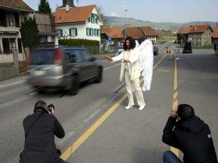 中新網(wǎng)5月13日電 據(jù)臺灣“今日新聞網(wǎng)”13日報道,瑞典警方為了防止民眾在道路上開快車,就想出一個“守護天使”計劃。警察們雇用一個演員扮演“白衣天使”,并要他站在路旁勸路過的來車開慢一點,以免他們因超速駕駛而出車禍。
