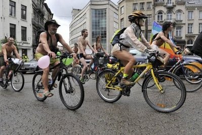 據(jù)報道,大約50名沒穿褲子、赤身裸體的比利時人在首都布魯塞爾市組成隊伍,騎著自行車游行。雖然當(dāng)天風(fēng)雨交加,“勇士”們的熱情卻沒有輕易被澆滅。