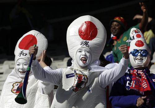 不過(guò),除了這些美女,世界杯賽場(chǎng)的女球迷也以一些令人匪夷所思的造型出現(xiàn)在公眾面前。報(bào)道指出,以日本女球迷為例,全身“裹粽子”般包得緊緊地,如同將相撲的服裝穿在身上,令人看不懂她們追求的效果是什么?瓷先,她們的造型像是“安全套”,又像是保齡球瓶,和足球賽仿佛搭不上調(diào)。不過(guò),唯一能確定的是,她們?cè)诙斓哪戏菓?yīng)該不會(huì)受涼。