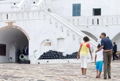 中新網(wǎng)7月12日電 綜合報道,美國總統(tǒng)奧巴馬以參觀前奴隸交易中心結(jié)束了他對西非國家加納的訪問,曾有很多非洲奴隸從這個交易中心被運往美國。奧巴馬一家星期六參觀了海岸角城堡,英國在17世紀把這個緊靠海邊的堡壘改為奴隸交易所。