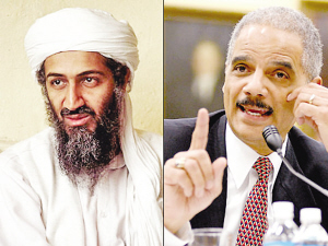 本·拉登是美國(guó)的頭號(hào)敵人,美國(guó)司法部長(zhǎng)埃里克·霍德?tīng)柦辗Q(chēng),拉登永遠(yuǎn)不會(huì)在美國(guó)受審,因?yàn)樗麑⒉粫?huì)被生擒。而美國(guó)軍方則宣稱(chēng)活捉拉登仍然是其目標(biāo)。為了抓拉登,從軍方到民間都想出了不少劍走偏鋒的可笑招數(shù)。