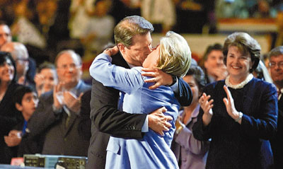兩人于1970年5月共諧連理,在人前非常恩愛,被視為政壇上的模范夫妻。在2000年民主黨總統(tǒng)提名大會上,他和蒂珀當(dāng)眾來了一次長長的熱吻,成為佳話,被評為選競中最難忘的時(shí)刻之一。