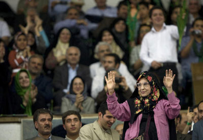 隨著大選如火如荼地開(kāi)展,一位伊朗女性逐漸被大家所熟悉,甚至被西方媒體稱為“伊朗政壇上的新星”,她就是扎哈拉·拉赫納娃德——穆薩維的妻子。自丈夫參選后,穆薩維夫婦總是形影不離地出現(xiàn),拉赫納娃德甚至多次單獨(dú)代表穆薩維參加集會(huì)。現(xiàn)年64歲的她擁有博士后學(xué)歷,曾經(jīng)是阿爾扎哈拉女子大學(xué)的校長(zhǎng),也曾擔(dān)任前總統(tǒng)哈塔米的顧問(wèn),可謂穆薩維的“得力干將”。