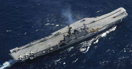 印度海軍還在大力發(fā)展航母等藍水海軍的戰(zhàn)略武器。今年2月28日,印度第一艘自主研制航母的組裝開工儀式在南部港口城市科欽舉行。印度人預計這艘國產航母在2014年左右可以形成戰(zhàn)斗力。而印度此前就已經向俄羅斯進口的“戈爾什科夫”號航母則有望在2012年服役。未來印度海軍的兩個航母編隊同時執(zhí)勤,一艘可以在印度洋保持日常巡邏,另一艘則可以前出阿拉伯海甚至太平洋、大西洋等地活動,提高印度的全球影響。