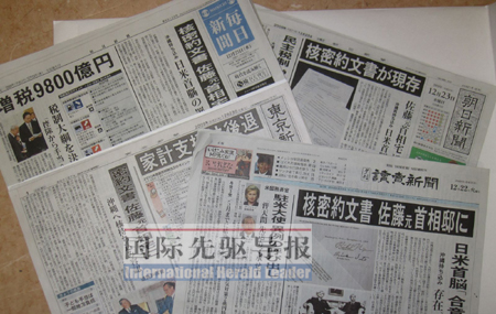 《國際先驅(qū)導(dǎo)報(bào)》記者劉華發(fā)自東京 12月22日,日本《讀賣新聞》晚報(bào)在頭版頭條刊文稱,一份由美國前總統(tǒng)尼克松和日本前首相佐藤榮作簽署的有關(guān)日美兩國“核密約”的文件,一直保存在日本前首相佐藤榮作的舊宅。