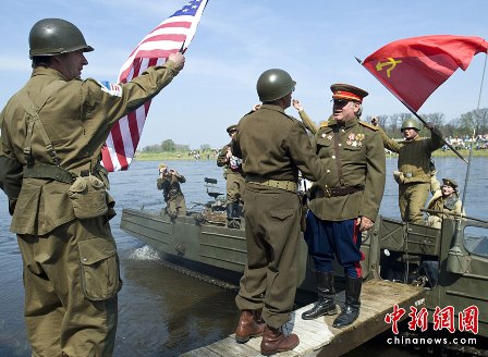 中新網(wǎng)4月26日電 據(jù)俄新網(wǎng)報(bào)道,25日,美國總統(tǒng)奧巴馬和俄羅斯總統(tǒng)梅德韋杰夫就第二次世界大戰(zhàn)期間美蘇軍隊(duì)在德國易北河會(huì)師65周年紀(jì)念日發(fā)表了聯(lián)合聲明。