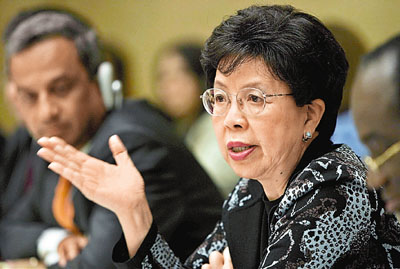 據(jù)香港《文匯報(bào)》報(bào)道,陳馮富珍在日內(nèi)瓦的世衛(wèi)年會(huì)上說:“當(dāng)我看見更多來自病毒本身和疾病蔓延的跡象,我必然會(huì)作出一個(gè)困難的決定,不會(huì)危及全球人的健康!