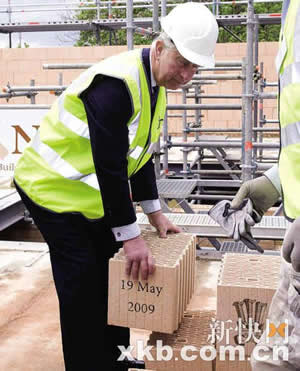 開始的時候,王儲興致勃勃,他拒絕了現(xiàn)場施工經理提供的防護手套。戴上安全帽、穿好防護馬甲后,查爾斯開始搬運蜂窩狀磚塊,修建圍墻。