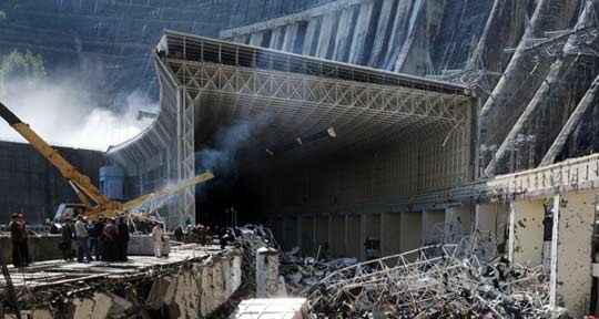 俄羅斯最大水電站薩彥-舒申斯克水電站位于俄西伯利亞地區(qū)哈卡斯共和國(guó)境內(nèi),17日清晨,在工作人員執(zhí)行維修工作時(shí),一個(gè)變壓器爆炸,毀壞了引擎室里的墻壁和天花板,并導(dǎo)致室內(nèi)水管壓力激增而爆裂,引擎室被水淹沒,造成水災(zāi)。據(jù)悉,水電站大壩本身沒有受損,也沒有對(duì)當(dāng)?shù)鼐用顸c(diǎn)造成威脅。