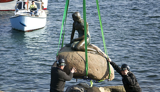2009年3月12日,哥本哈根市議會投票同意讓“小美人魚”銅像進駐上海世博會丹麥展區(qū),此舉推動了丹麥與中國的文化交流。據(jù)悉,中國藝術(shù)家將通過一個視頻裝置,對“小美人魚”從哥本哈根到上海的“旅途”進行全程監(jiān)控與錄像。上海世博會期間,每當夜幕降臨,“小美人魚”的美妙之旅就會躍然于丹麥館內(nèi)的大屏幕上。
