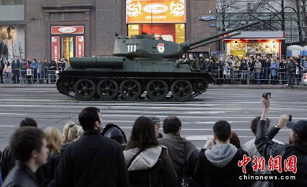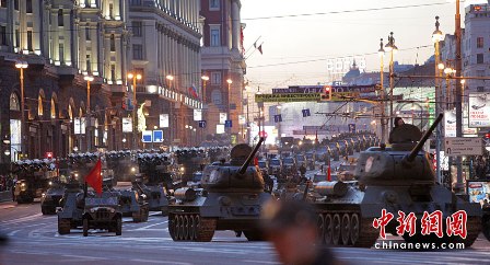 據(jù)報(bào)道,27日,俄羅斯出動(dòng)約159輛軍用車輛及1萬多名軍人,進(jìn)行了關(guān)于今年5月9日俄羅斯衛(wèi)國戰(zhàn)爭“勝利日”65周年時(shí),紅場閱兵儀式的彩排活動(dòng)。此次閱兵分為兩部分:歷史部分和現(xiàn)代部分。歷史部分由身穿衛(wèi)國戰(zhàn)爭時(shí)期軍服的士兵游行,同時(shí)還會(huì)有9輛T-34坦克和8輛SU-100自行火炮進(jìn)行在游行隊(duì)伍當(dāng)中,F(xiàn)代部分則由13輛老虎裝甲車、BTR-80裝甲車、BMP-3步兵戰(zhàn)車、T-90A坦克和S-400防空系統(tǒng)等組成。