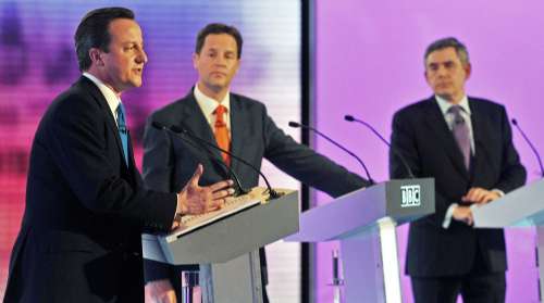 中新網(wǎng)5月1日電 英國(guó)三大政黨黨魁二十九日進(jìn)行大選之前最后一次電視辯論。據(jù)香港大公網(wǎng)報(bào)道,民調(diào)顯示保守黨黨魁卡梅倫得分最高。幾個(gè)電視臺(tái)在辯論結(jié)束后對(duì)民眾的即時(shí)調(diào)查發(fā)現(xiàn),至少三分一選民仍然未能決定支持那一政黨,電視辯論可增強(qiáng)選民對(duì)黨魁和各黨政策的了解,但不見(jiàn)得有哪里一黨通過(guò)電視辯論令大多數(shù)選民信服。