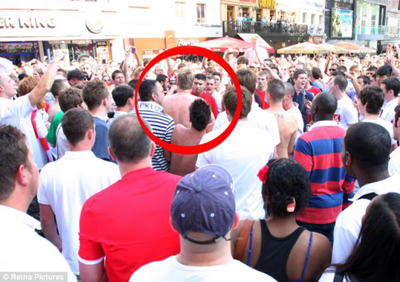 這名德國(guó)隊(duì)支持者赤裸著上身,誤入英格蘭球迷陣營(yíng)。他不斷地被人群推搡,還遭到肘臂擊撞。據(jù)悉,英格蘭慘遭淘汰后,類似的騷亂事件還在英國(guó)其他街頭和酒吧中發(fā)生。