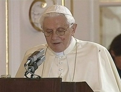 中新網(wǎng)9月27日電 羅馬教皇本篤十六世26日開(kāi)始訪問(wèn)捷克,他對(duì)捷克政要發(fā)表講話時(shí),記者發(fā)現(xiàn)一只蜘蛛爬上教皇的白袍,后來(lái)又爬到教皇脖子上。幸好這只蜘蛛還知道規(guī)矩,明白絕對(duì)不能咬教皇。