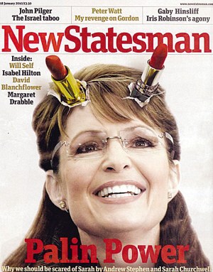 美國(guó)前阿拉斯加州州長(zhǎng)、2008年總統(tǒng)大選副總統(tǒng)候選人薩拉·佩林被稱為共和黨的“黷武主義者”。日前佩林遭英國(guó)左翼雜志《新政客》惡搞,封面照片中佩林變身惡魔,頭上長(zhǎng)出“口紅雙角”。