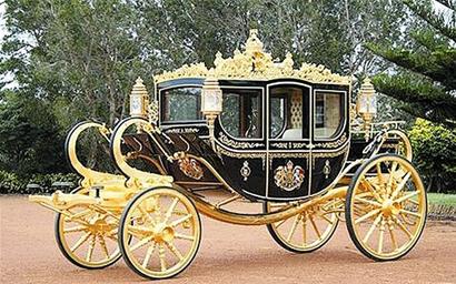 據(jù)報道,這輛奢華無比的“黃金婚車”名叫“不列顛尼婭(Brittania)”,由澳洲工匠弗萊.克林頓耗時6年打造。克林頓此前為英國女王伊麗莎白二世制造過多輛專屬馬車。這輛奢華的“黃金婚車”全車重達2.5噸,高3米,車身上裝飾有總計24顆鉆石、130顆藍寶石和超過400片金葉。車身上一百多塊木材分別取自倫敦塔、19世紀英國海軍名將納爾遜的“勝利號”戰(zhàn)艦以及16世紀亨利八世國王的“瑪麗.羅斯號”戰(zhàn)艦等重要王室建筑和文物,將是迄今為止英國最具有歷史意義的車輛之一。