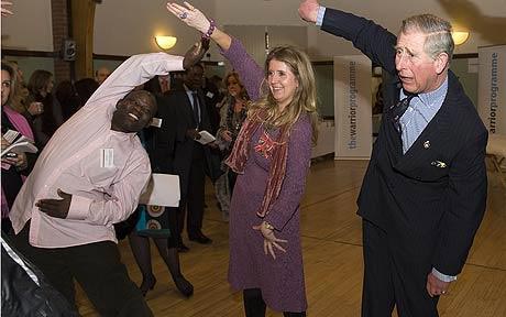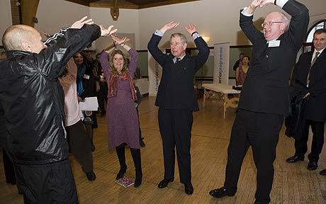 查爾斯王儲似乎對氣功很感興趣,氣功教練蓋伊·何教了他兩個簡單動作:先將右手舉到頭頂,手掌向上舉起,左手也做同樣的動作,最后雙手重復這個動作。蓋伊告訴他,想象自己手掌中正有一個能量球,但查爾斯的“能量球”掉下來兩次!八哪芰亢芎,他的精神力也很集中,但他需要一點兒技術。”查爾斯告訴另一位練習者說:“幾年前我的胳膊曾有兩處骨折,這讓我做起動作來很難!
