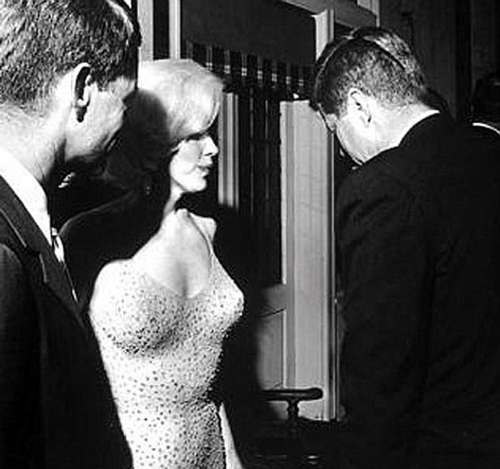 1962年5月19日,為慶?夏岬峡偨y(tǒng)即將到來(lái)的生日,瑪麗蓮-夢(mèng)露身穿綴滿亮片的露背晚禮服,在紐約麥迪遜花園廣場(chǎng)獻(xiàn)唱了一首甜蜜的《總統(tǒng)先生,生日快樂(lè)》。演唱結(jié)束后,白宮攝影師塞西爾-斯托頓抓拍到一張瑪麗蓮夢(mèng)露與肯尼迪兄弟的合影。