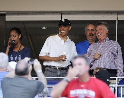 據(jù)報(bào)道,美國總統(tǒng)奧巴馬當(dāng)晚身穿白色短袖T恤,頭戴白襪隊(duì)球帽。除了第一女兒薩莎和馬莉婭,白宮高級顧問阿克塞爾羅德和奧巴馬的華人妹夫吳加儒亦有同行,在一個(gè)私人包廂觀看賽事。