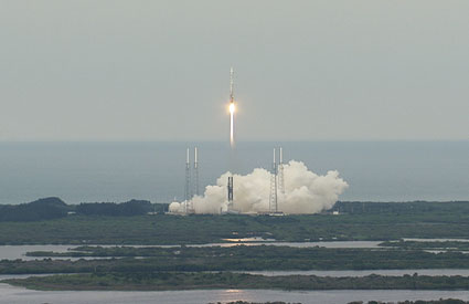 中新網(wǎng)6月19日電 當(dāng)?shù)貢r(shí)間18日下午5時(shí)32分,美國(guó)航天局在佛羅里達(dá)州卡納維拉爾角空軍基地發(fā)射一枚“宇宙神-5”運(yùn)載火箭,將“月球勘查軌道號(hào)”與“月球隕坑觀測(cè)與傳感衛(wèi)星”兩個(gè)月球探測(cè)器送上太空。這標(biāo)志著美國(guó)“2020年重返月球”計(jì)劃正式啟動(dòng)。
