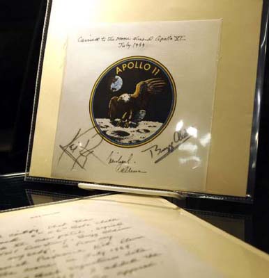 另一個驚喜是,一枚原來估價最高達三萬五千美元的“阿波羅十一號”徽章,竟以六萬一千美元售出。這枚徽章直徑長八點九厘米,上面印有一只在月球表面上空飛行的鷹。