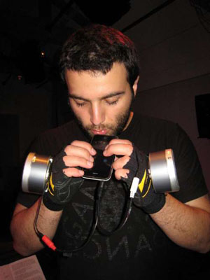 二十名樂團(tuán)團(tuán)員并不是一班鬧著玩的普通音樂系學(xué)生,他們都正在修讀一個(gè)名為“手機(jī)樂團(tuán)”的校內(nèi)課程,學(xué)習(xí)如何把iPhone改造成各種樂器。有了特定的應(yīng)用程序,加上內(nèi)置的全球定位系統(tǒng)(GPS)、數(shù)碼指南針和加速度計(jì),用家只要用手指敲打屏幕、向擴(kuò)音器吹氣,便可奏樂。演奏時(shí),iPhone會(huì)連上系在樂師的手腕上的揚(yáng)聲器。
