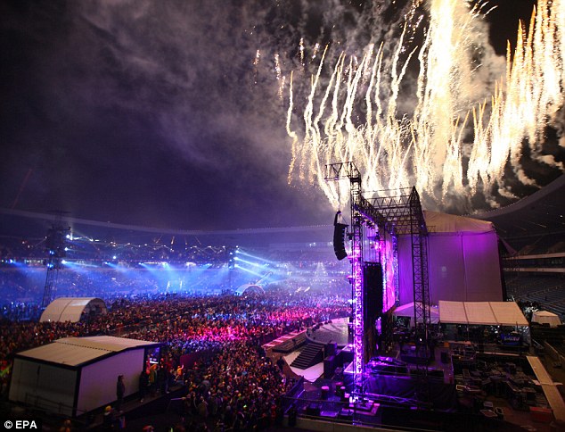 演唱會(huì)由傳統(tǒng)的非洲舞曲拉開序幕。之后美國(guó)樂隊(duì)黑眼豆豆一襲角斗士扮相登上舞臺(tái),為觀眾送上三首經(jīng)典曲目,引爆全場(chǎng)熱情。
