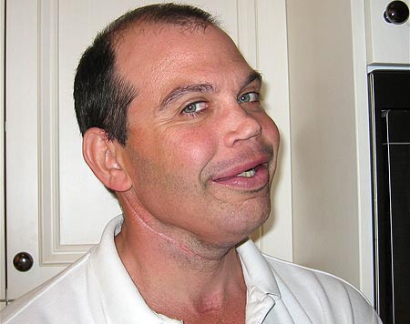醫(yī)生截取其肋骨和臀骨植入面部,重塑鼻子和下巴;又以腿部動脈挪到頸部,手腕皮膚則移植到下臉部。經(jīng)過連串手術(shù),加萊格一年不能說話,其中兩周更不能飲食。他還要頻頻進入氧氣室,以刺激面部新血管生長。