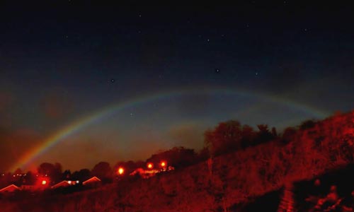 據(jù)報(bào)道,彩虹出現(xiàn)在英國北約克郡Richmond鄉(xiāng)村地區(qū),通常彩虹是雨滴折射陽光形成的景象,而此次彩虹出現(xiàn)時(shí)太陽已經(jīng)下山很久了,不過當(dāng)天有一輪圓月,為人們帶來了奇特的夜間彩虹。