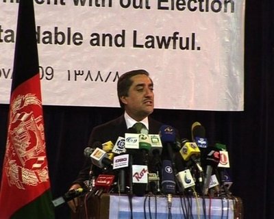 阿卜杜拉當(dāng)天在喀布爾舉行的新聞發(fā)布會上說:“我不會參加11月7日的選舉,因?yàn)椴豢赡芘e行透明的選舉! 阿卜杜拉告訴自己的支持者,他在“廣泛征求民眾意見”后作出這一“艱難的決定”。阿卜杜拉還表示,他不相信在不撤換選舉委員會負(fù)責(zé)人的情況下能夠舉行一場自由和公平的選舉,因?yàn)樵撐瘑T會對第一輪選舉中的舞弊行為負(fù)有責(zé)任。但當(dāng)被問及是否呼吁抵制第二輪選舉時(shí),阿卜杜拉回答道:“我沒有發(fā)出那個(gè)號召!