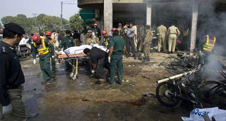 拉瓦爾品第是巴基斯坦軍事重鎮(zhèn),距首都伊斯蘭堡只有14公里。這座城市在過去2個月里曾兩度遭遇恐怖襲擊。10月10日,數(shù)名武裝分子喬裝成士兵,闖入陸軍司令部大樓發(fā)動襲擊,綁架了數(shù)名人質(zhì),和巴安全部隊對峙22個小時,最后有9名武裝分子和14名軍民被打死。11月2日,陸軍司令部大樓附近的的一座臨街酒店發(fā)生爆炸,造成35人死亡。