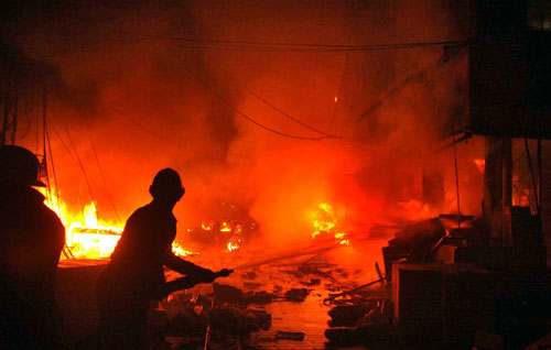 當?shù)鼐奖硎,一枚炸彈被藏在“月亮”市場一個貨攤內(nèi),另一枚炸彈被放置在摩托車上,恐怖分子很可能是用遙控裝置將其引爆。