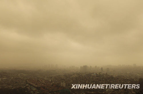中新網(wǎng)3月22日電 據(jù)韓國《朝鮮日?qǐng)?bào)》報(bào)道,上周末,韓國全境遭到史無前例的最厲害的“超級(jí)沙塵”襲擊。這場(chǎng)沙塵暴20日下午來襲,持續(xù)到21日凌晨,韓國全境被黃黃的沙塵吞沒。