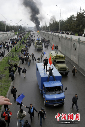 中新網(wǎng)4月8日電 當(dāng)?shù)貢r(shí)間4月6日開(kāi)始,數(shù)千名吉爾吉斯斯坦反對(duì)派示威者在首都比什凱克市中心集會(huì)游行,并與防暴警察發(fā)生沖突,逐漸演變成騷亂,造成數(shù)百人傷亡。反對(duì)派扣押政府高官,占領(lǐng)部分政府機(jī)構(gòu)以及國(guó)家電視臺(tái),并稱最終目的是要總統(tǒng)下臺(tái),奪取國(guó)家政權(quán)。吉總統(tǒng)巴基耶夫下令全國(guó)進(jìn)入緊急狀態(tài),并宣布實(shí)行宵禁。